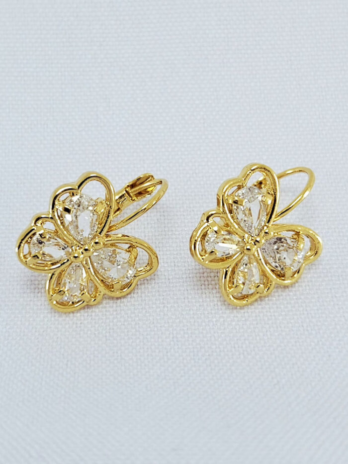 folheado a ouro.Brinco estilo Borboleta vazado com pedra cristal