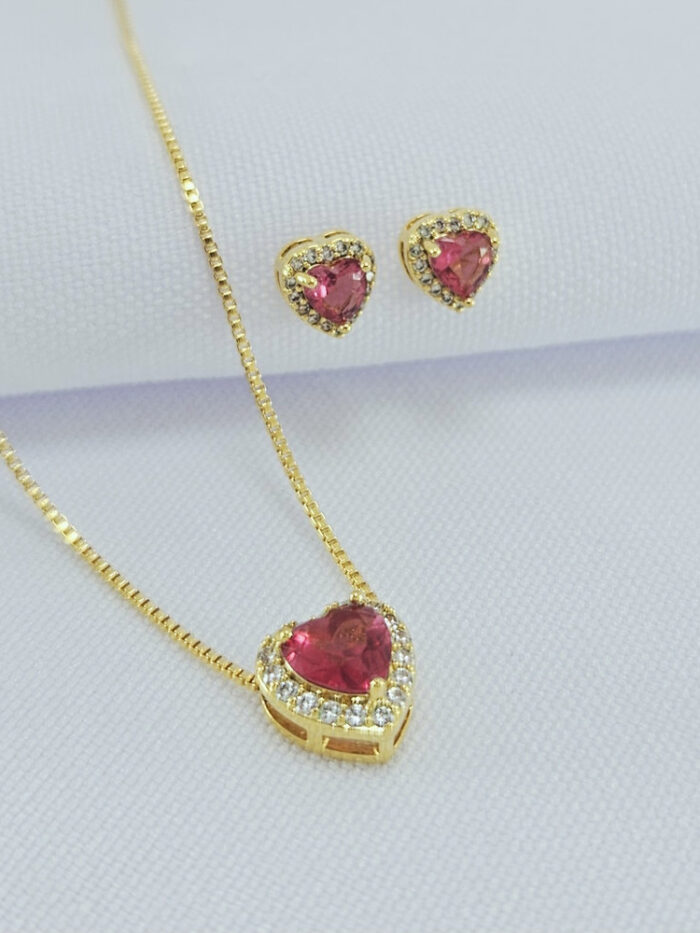Conjunto com coração borda cravejada