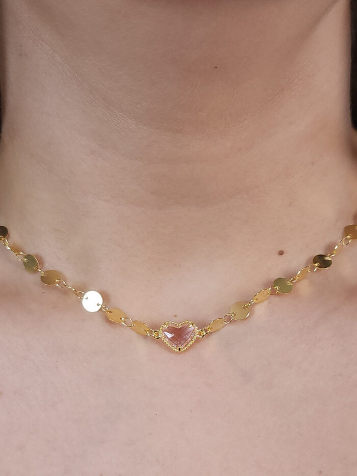 R$ 29,90Gargantilha chocker coração cristal elos chapeado