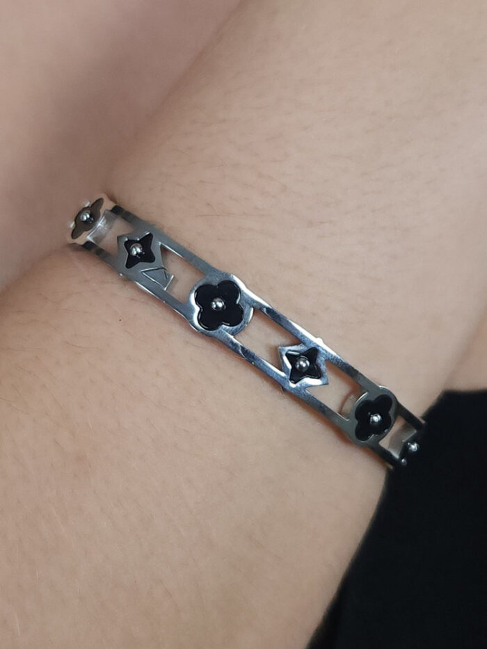 Aço inoxBracelete com detalhe coração cravejado vazado