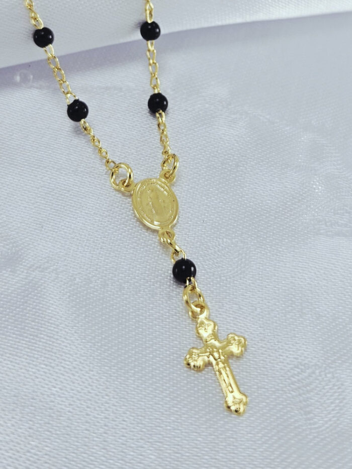 Bracelete fios duplo com detalhe círculo preta com ponto de luz
