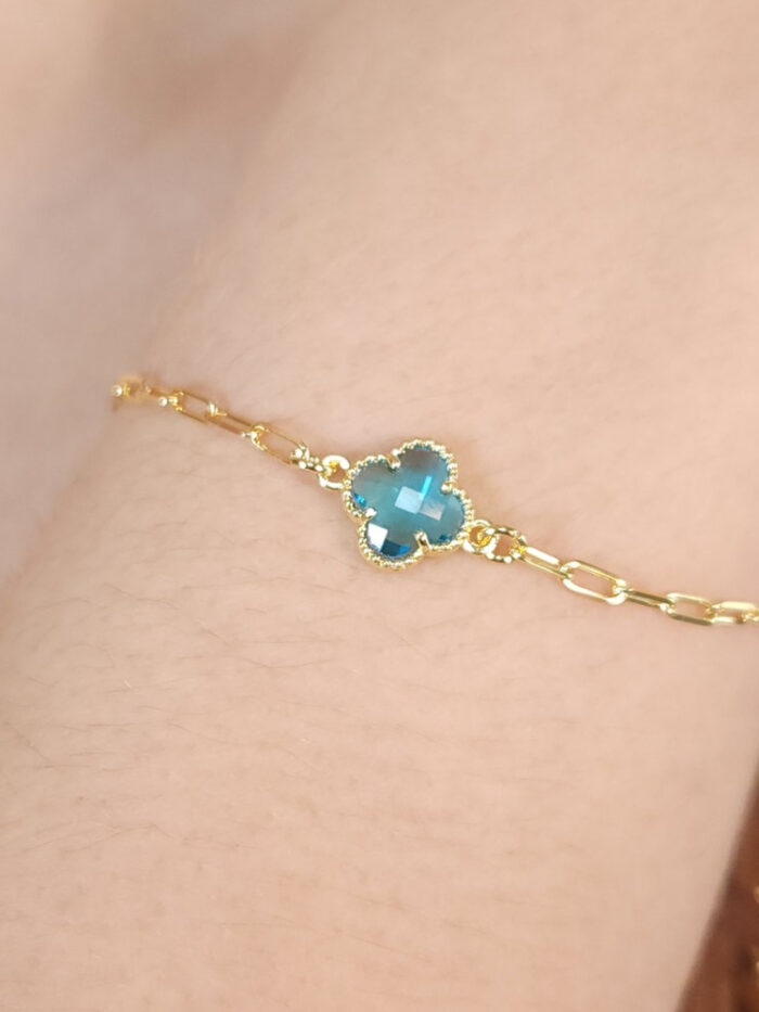 Pulseira elos estilo folhas dourado detalhe trevo preto