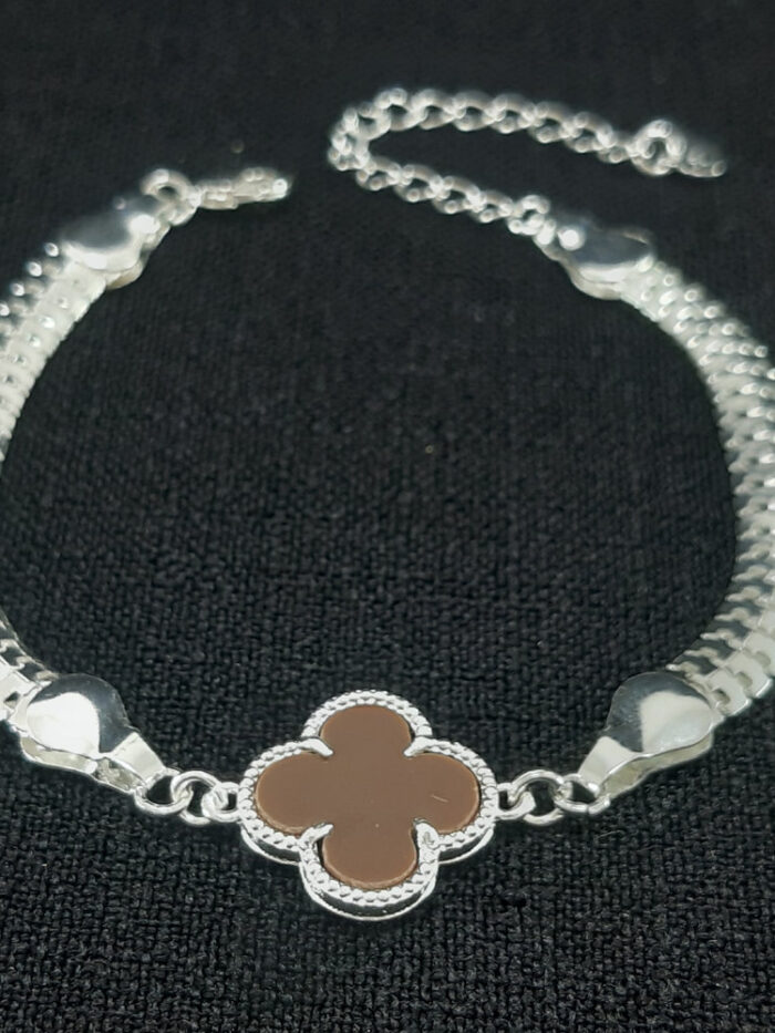 Pulseira trevo marrom borda detalhado