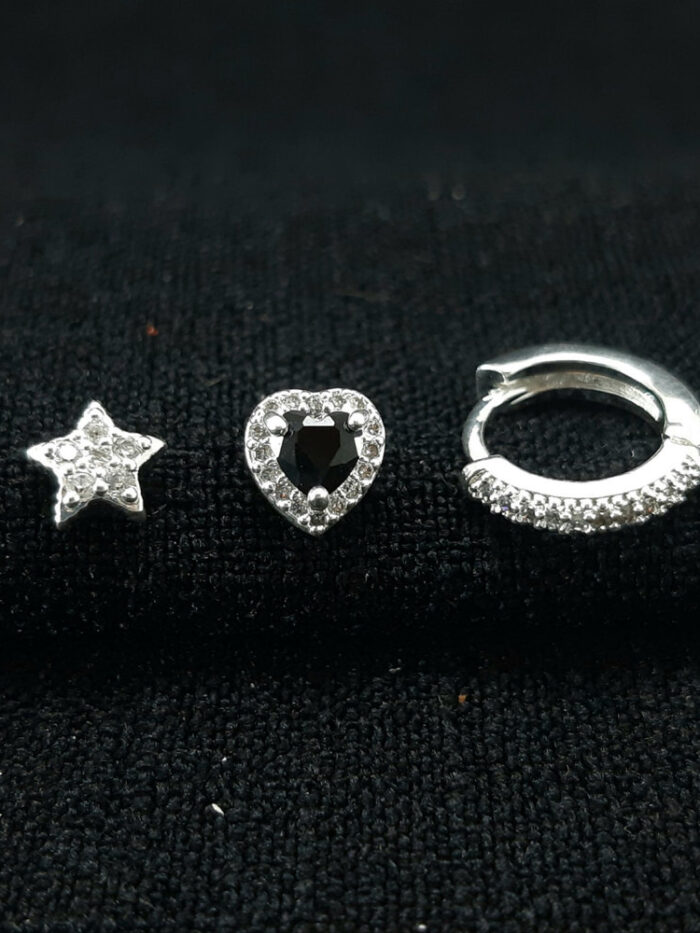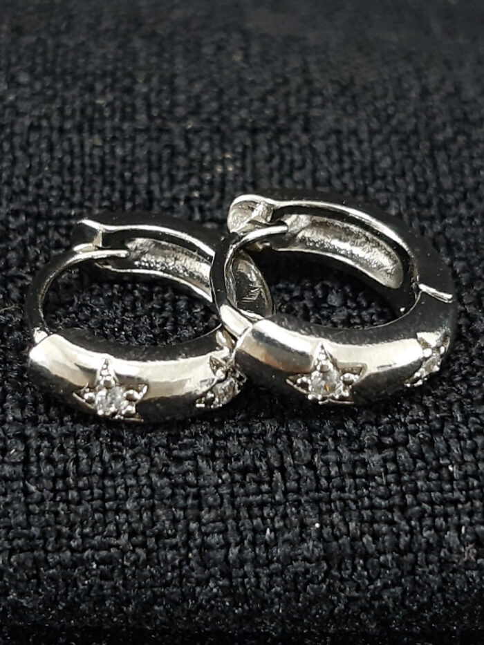 Tamanho 44cm,com fecho lagosta brinco 1cm em média,com tarraxa tradicional.Pulseira singapura com triângulo cristal e liso