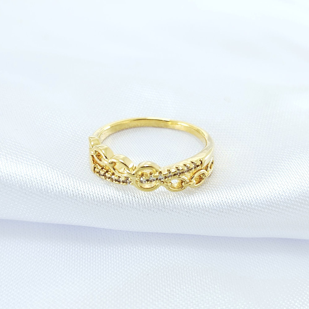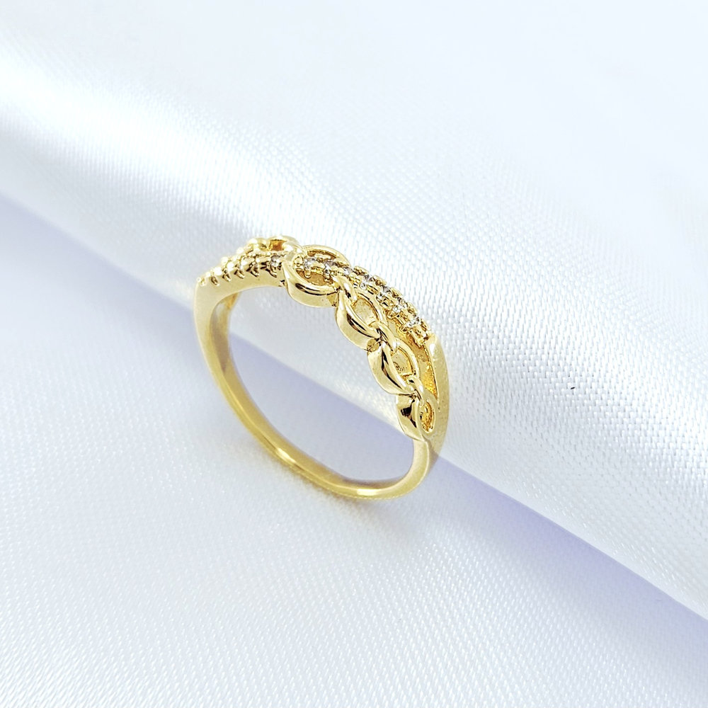 Anel dois fios cruzado cravejado e elos