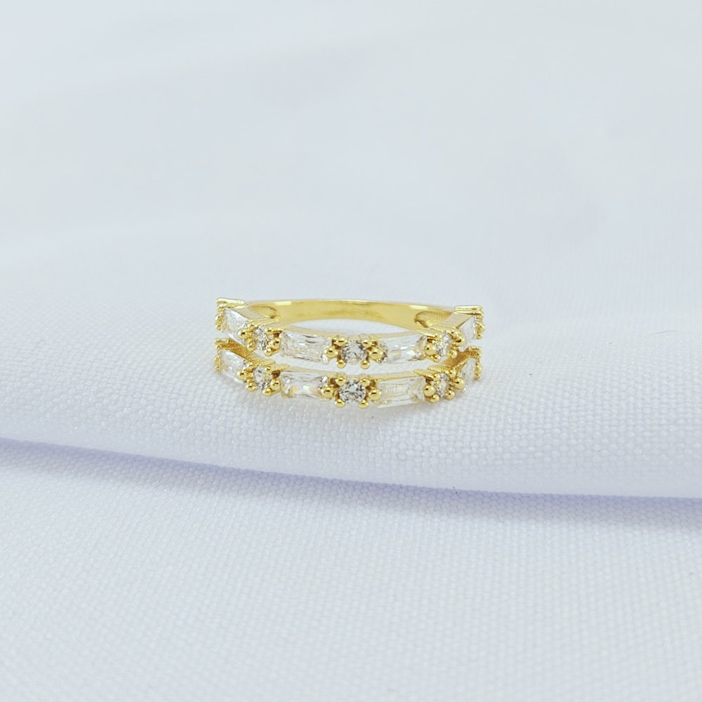 Anel fio duplo pedra baguete cristal