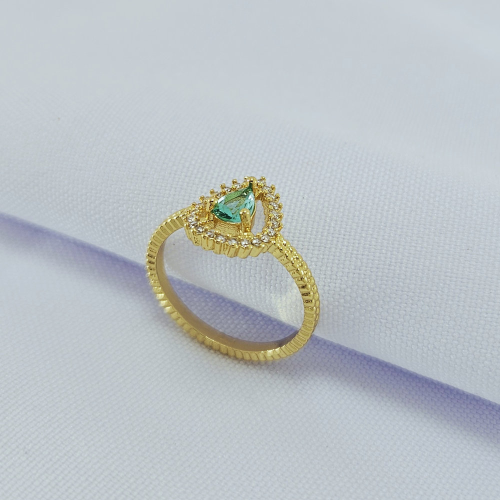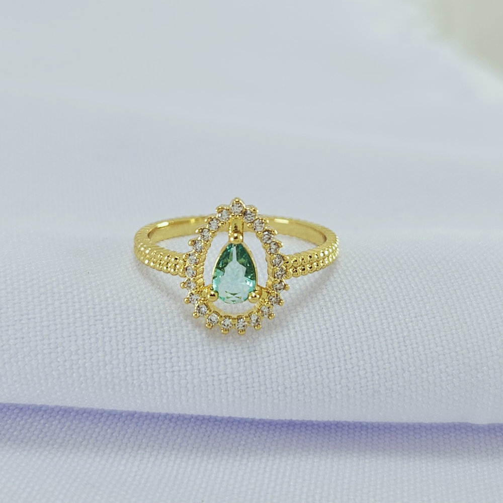 Anel gota detalhe cravejado (Verde Claro)