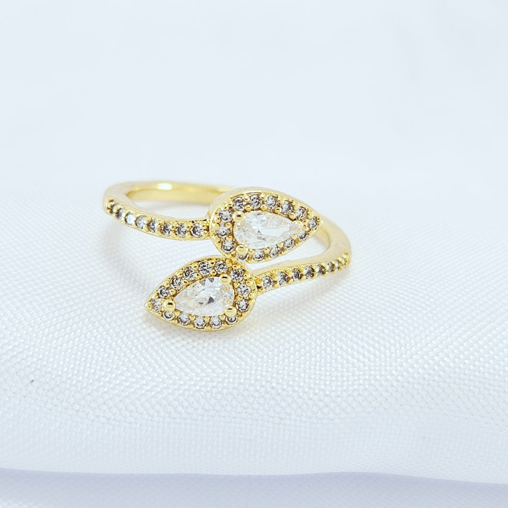 Anel gota dois fios cravejados