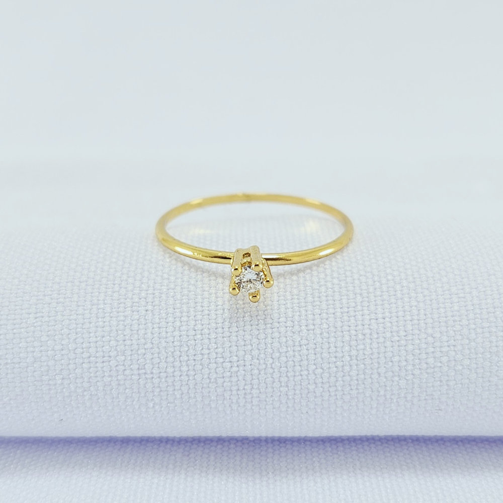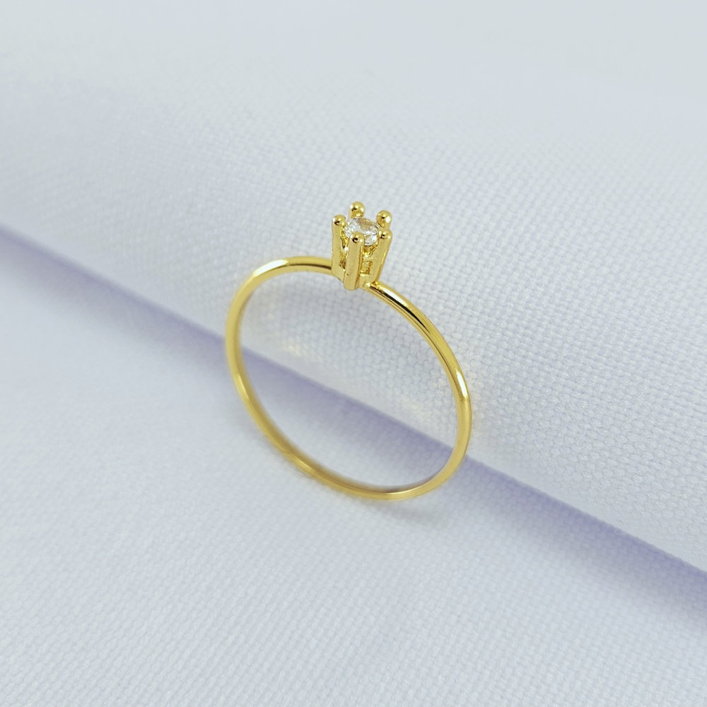 Anel minimalista pedra cristal detalhado ao redor