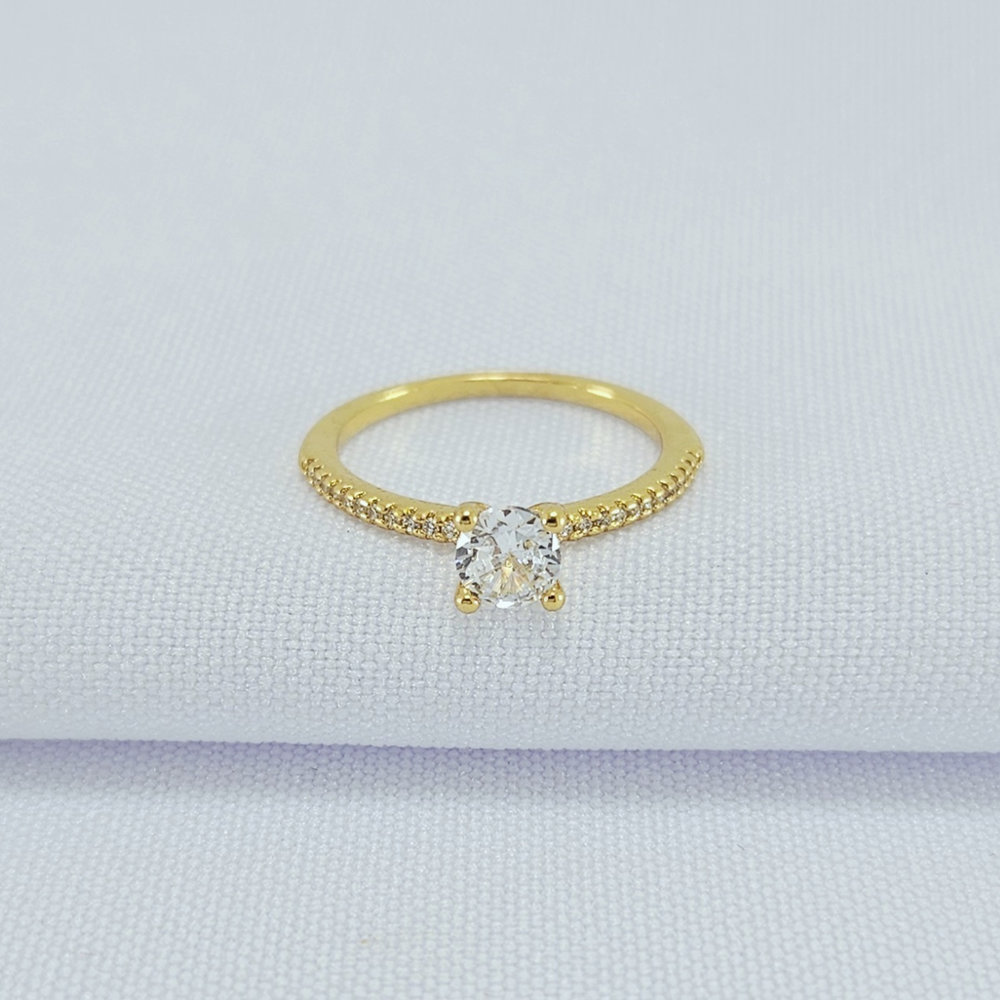 Anel pedra cristal detalhe cravejado
