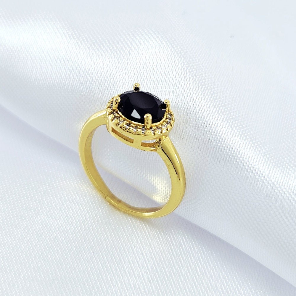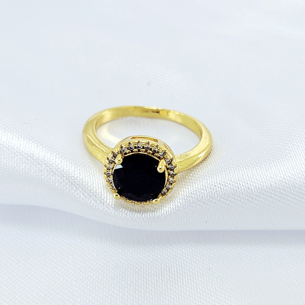 Anel redondo com pedra preta borda cravejado
