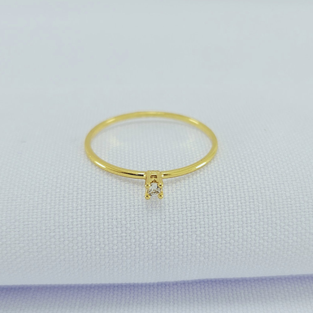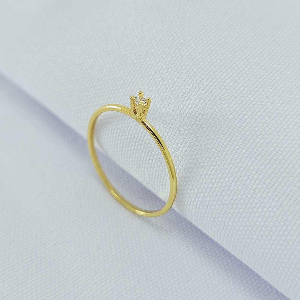 Anel solitário minimalista pedra cristal