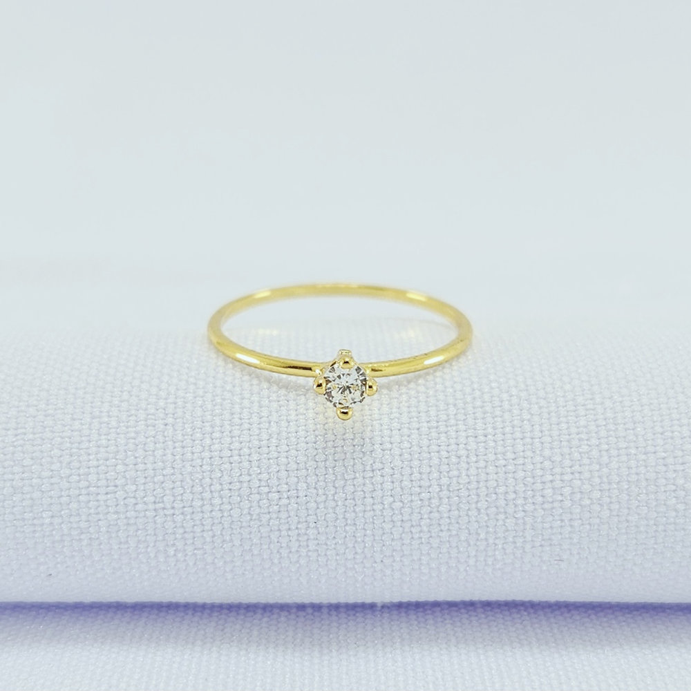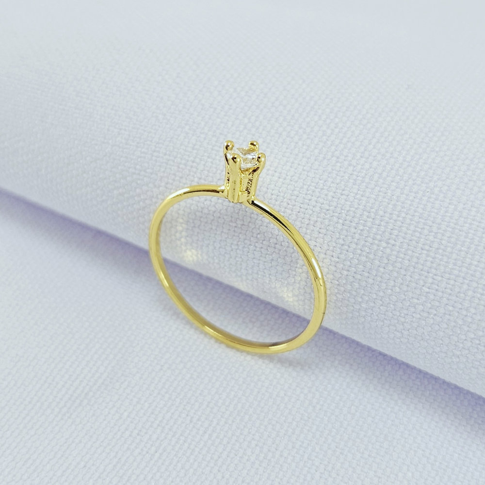 Anel solitário pedra cristal minimalista