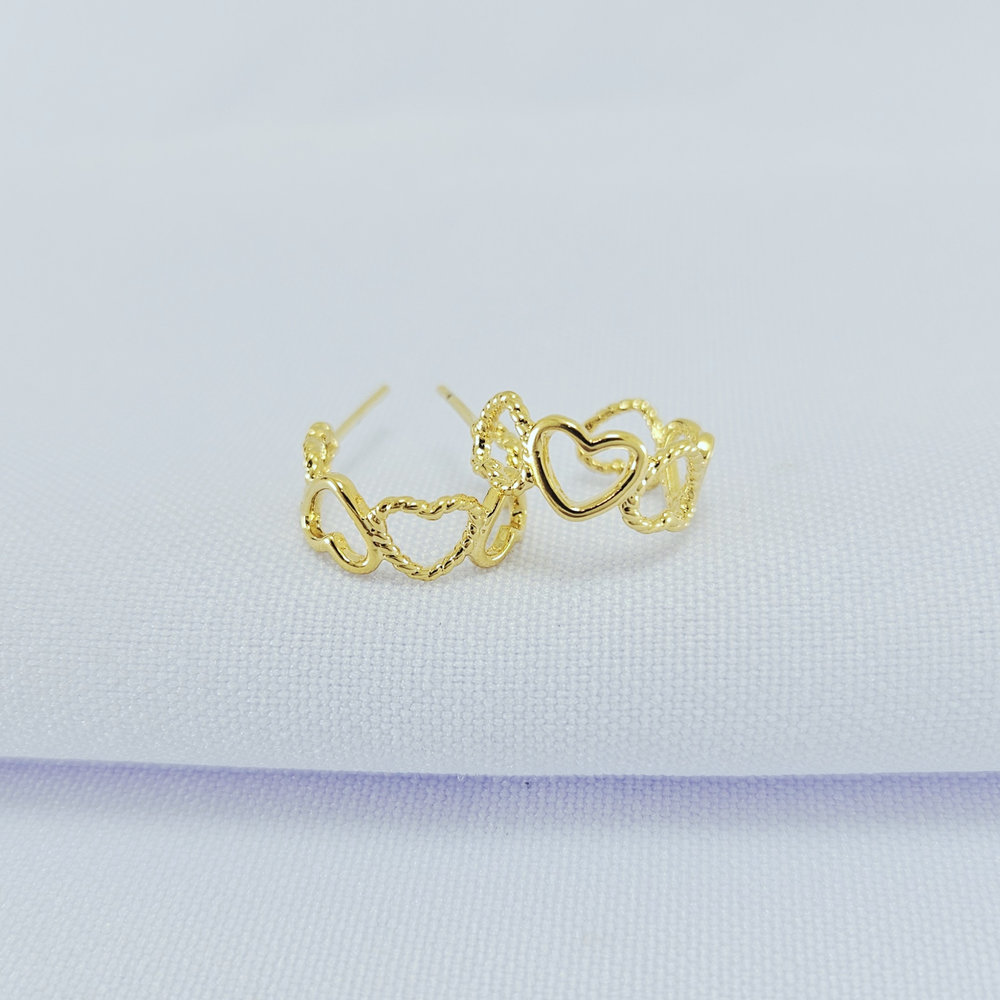 Argola fios corações lisos e trançados