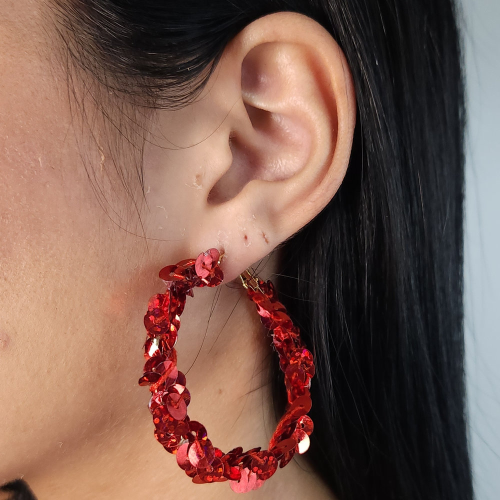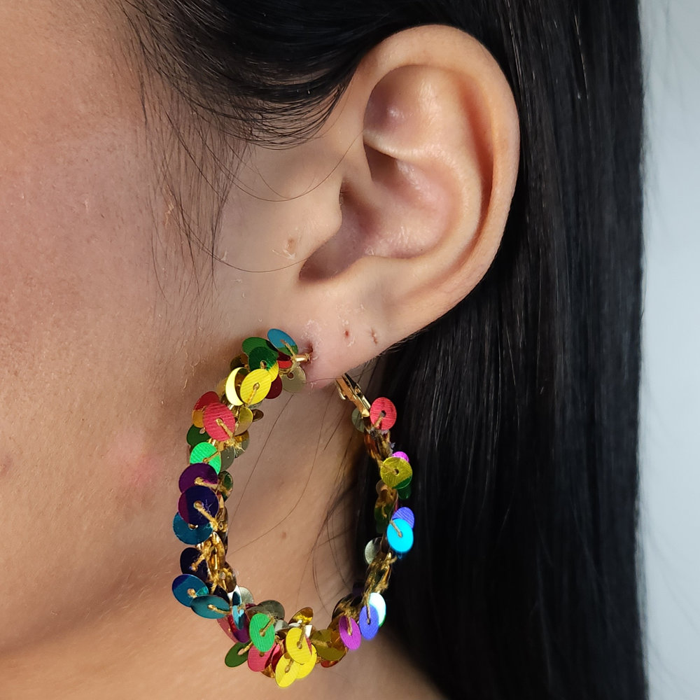 Brinco argola base lantejoula