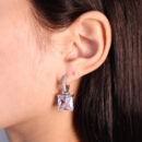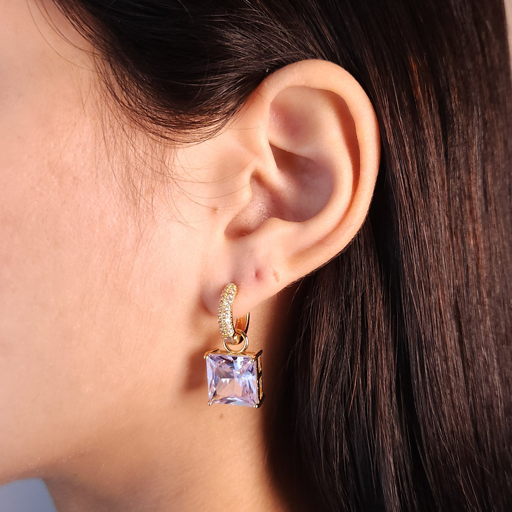 Brinco argola com pedra quadrada cristal