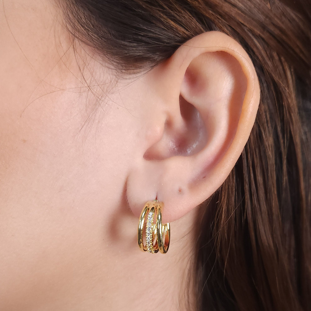 Brinco argola fios lisos e com strass