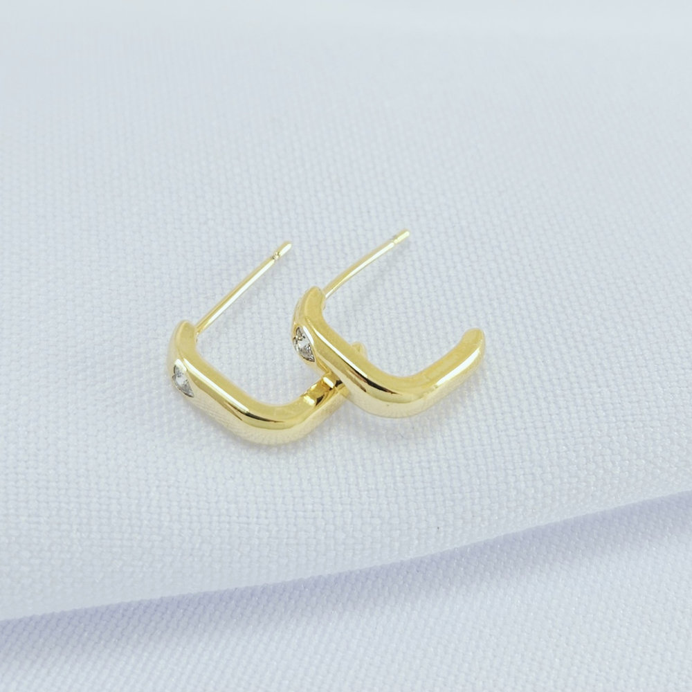 Brinco argola quadrada com ponto de luz coração