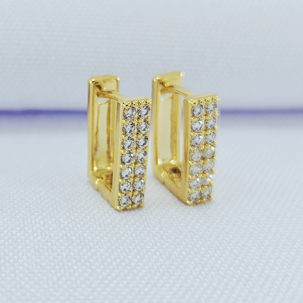 Brinco argolinha quadrada cravejada