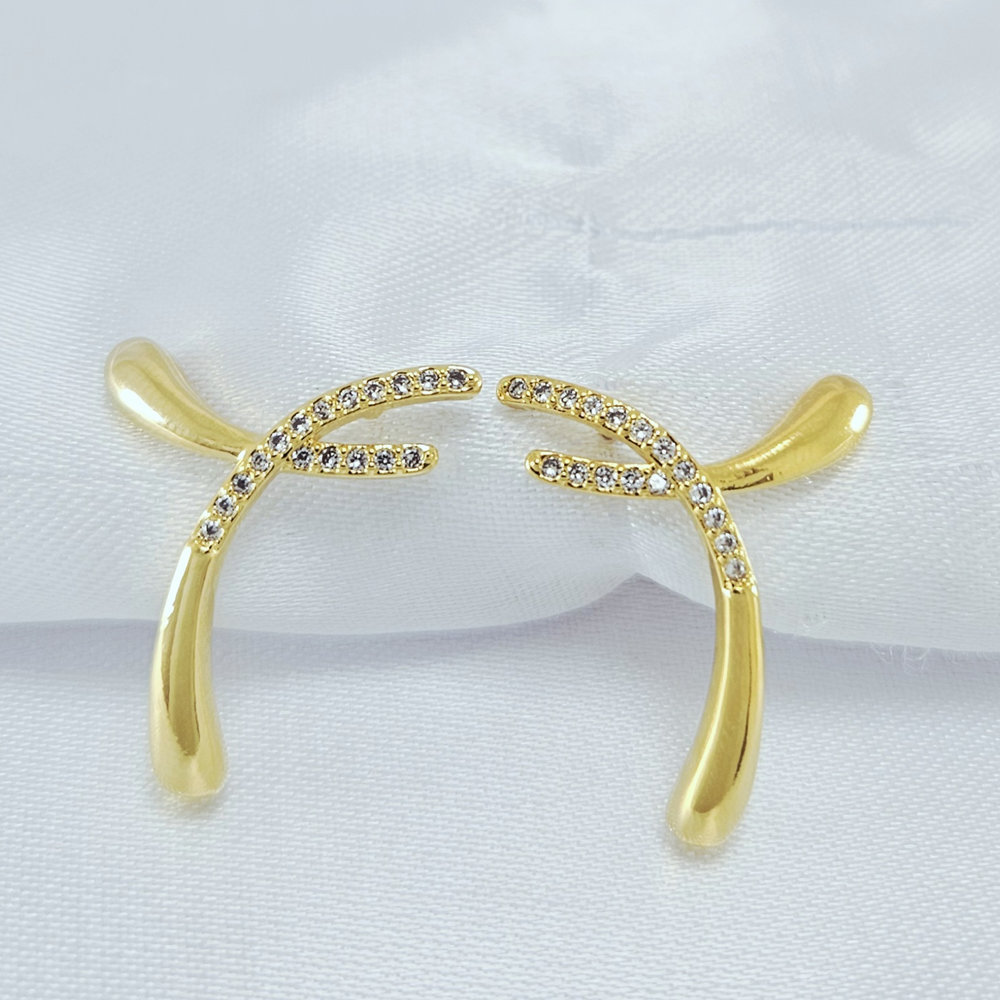 Brinco base cravejado com pêndulo gota lisa
