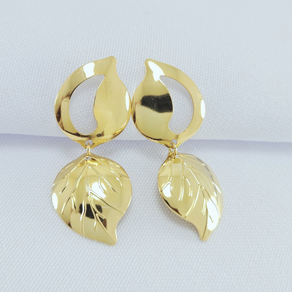 Brinco base lisa detalhe vazado com folha pêndula