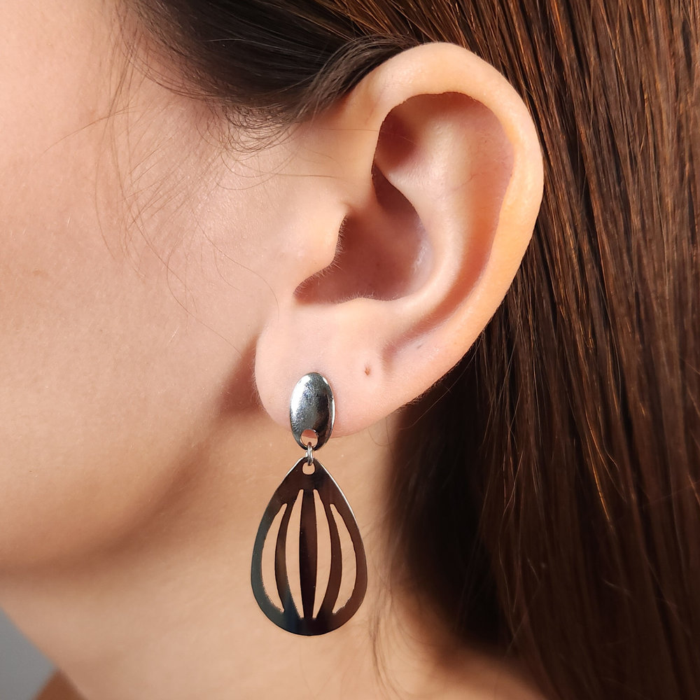 Brinco base prateada com elo oval pêndulo