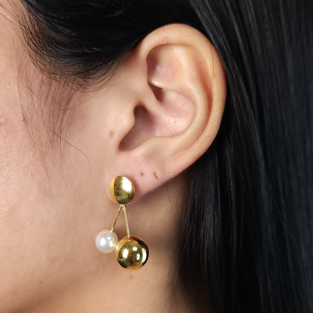 Brinco bola dupla lisa com pérola