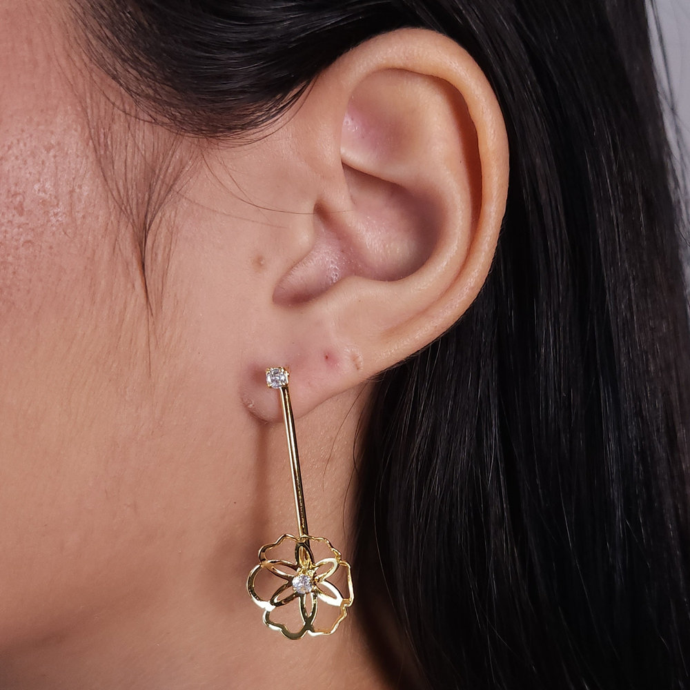 Brinco caninho com flor vazada e ponto de luz