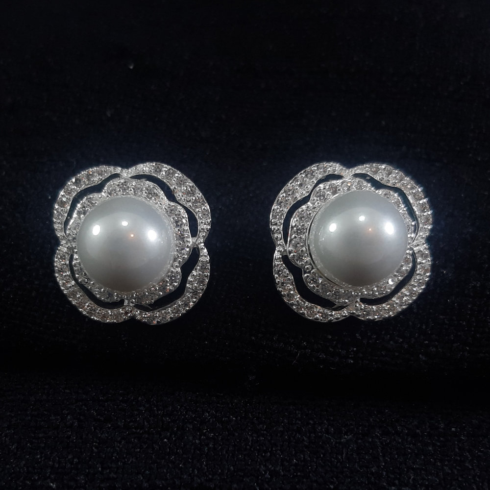 Brinco com pérola estilo flor