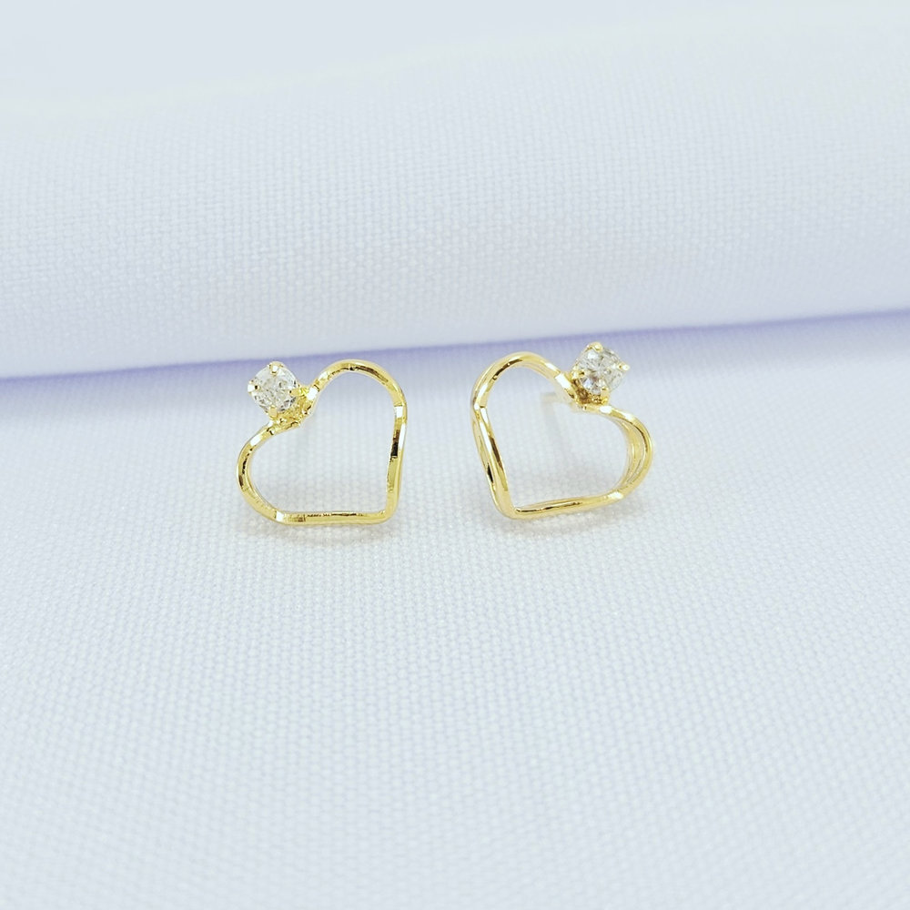 Brinco coração borda vazada com ponto de luz