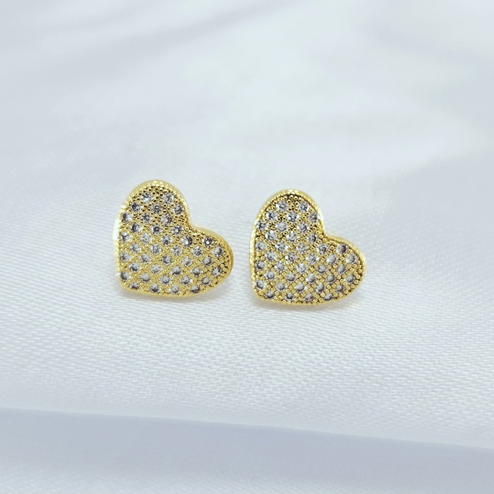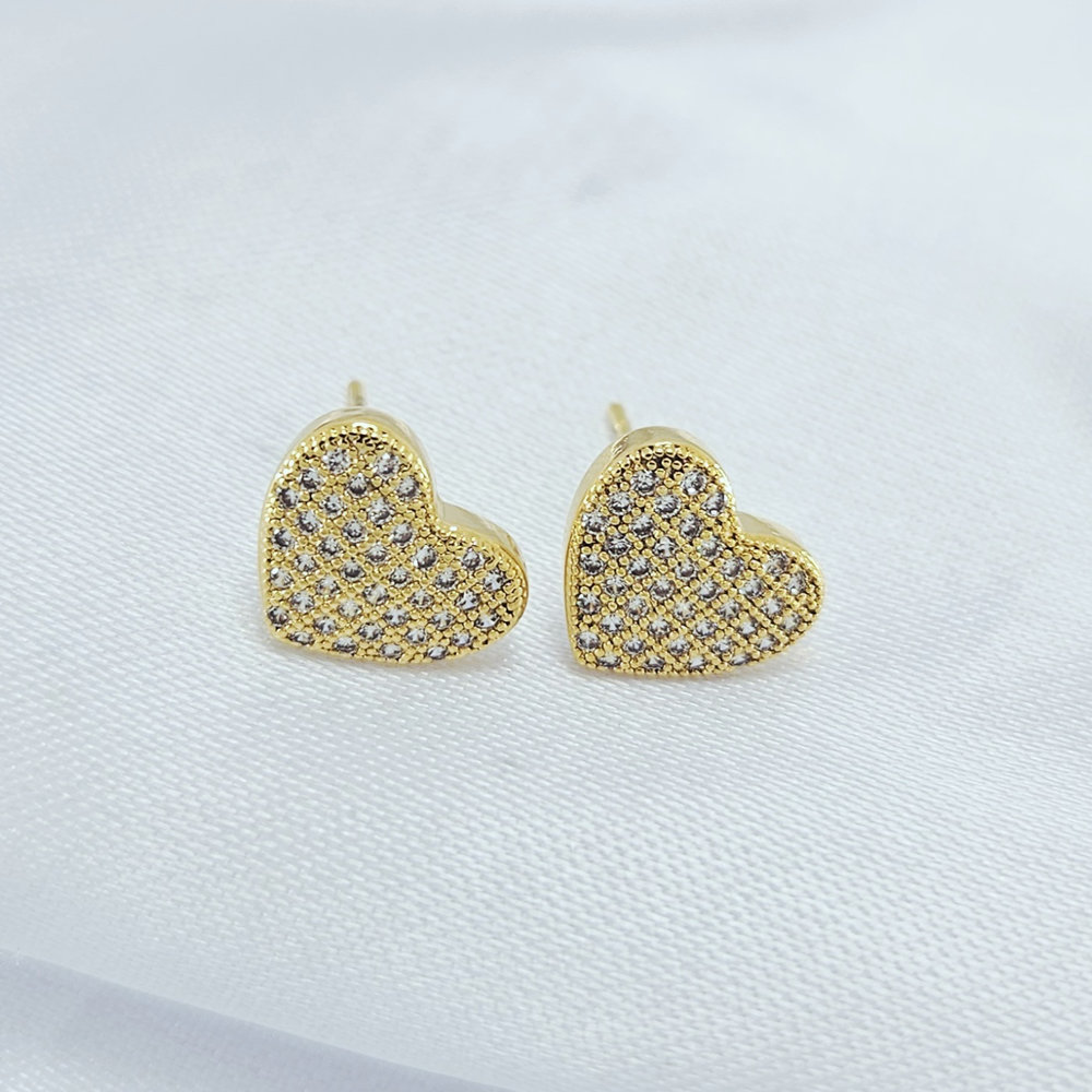 Brinco coração cravejado