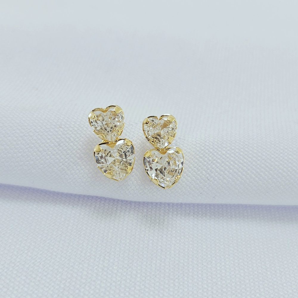Brinco coração duplo pedra cristal