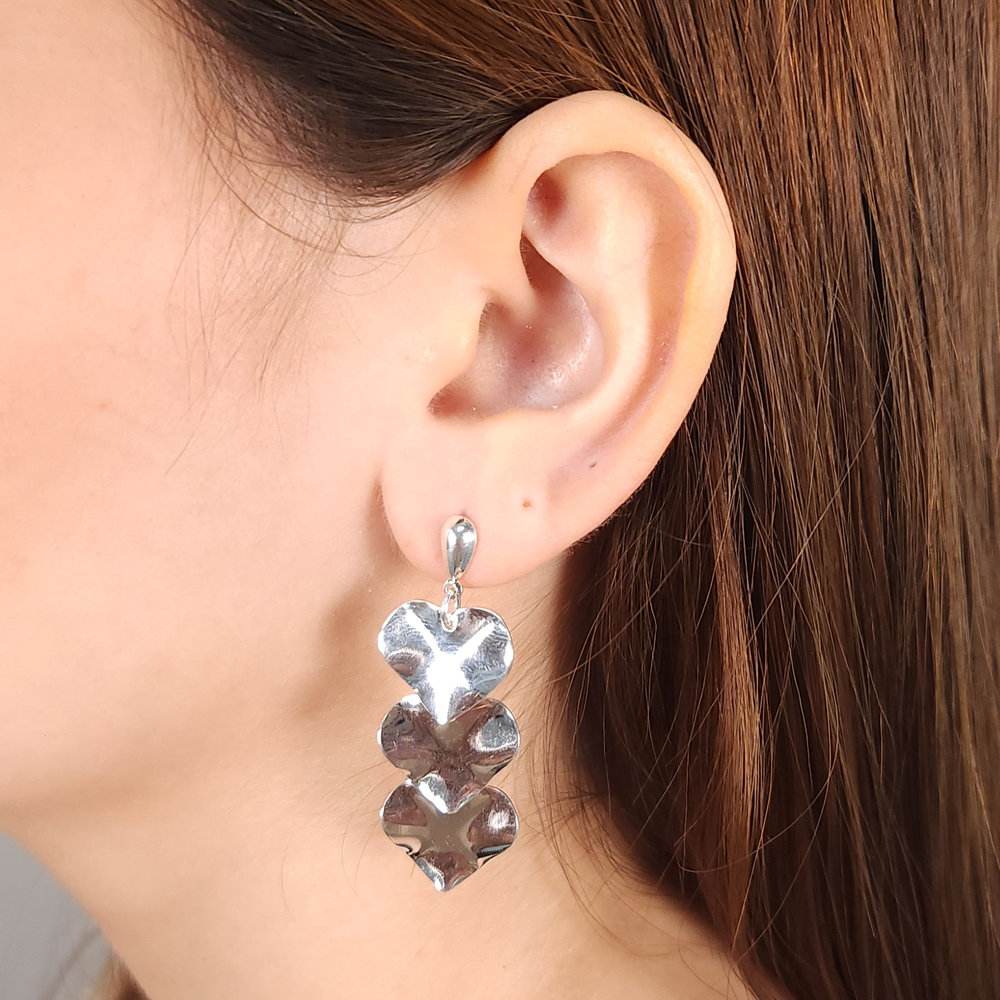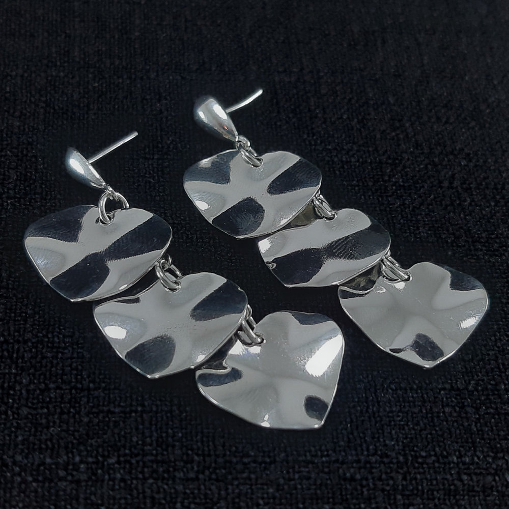 Brinco coração triplo detalhe martelado