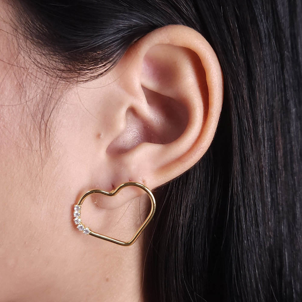 Brinco coração vazado detalhe cravejado