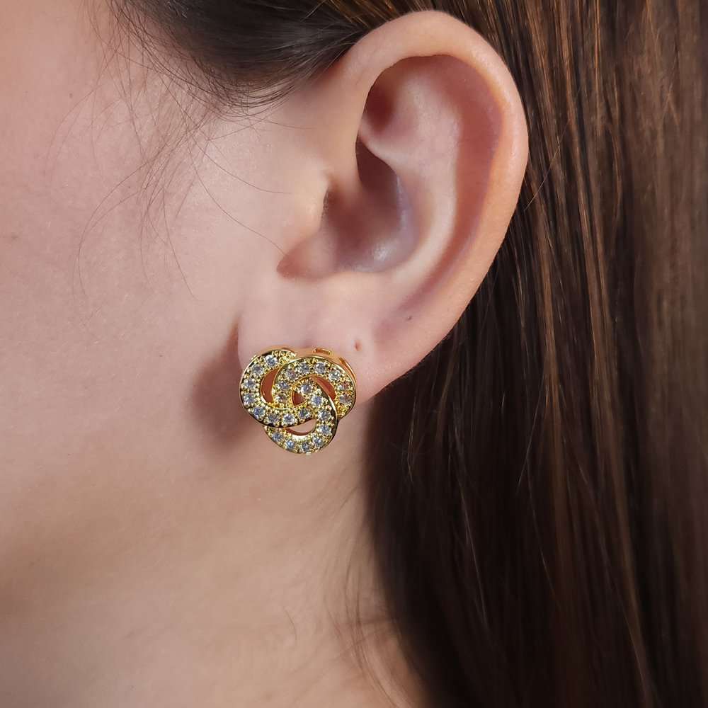 Brinco elos entrelaçados cravejado e vazsado