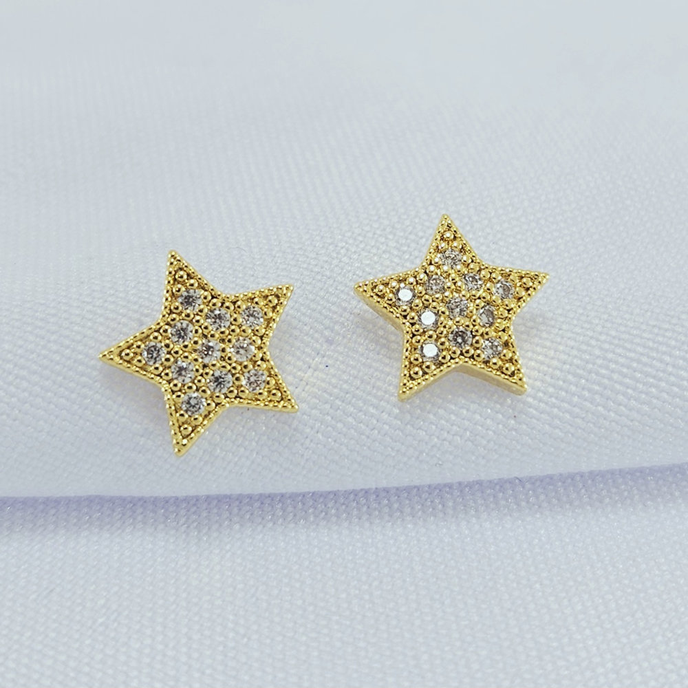 Brinco estrela cravjada em zircônia