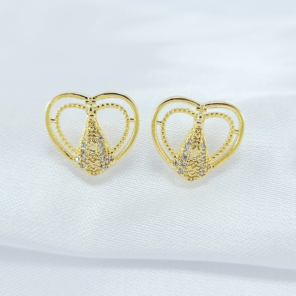 Brinco fio duplo com detalhe nossa senhora aparecida cravejado