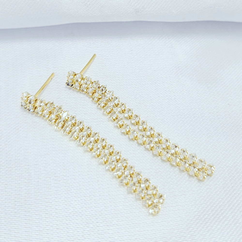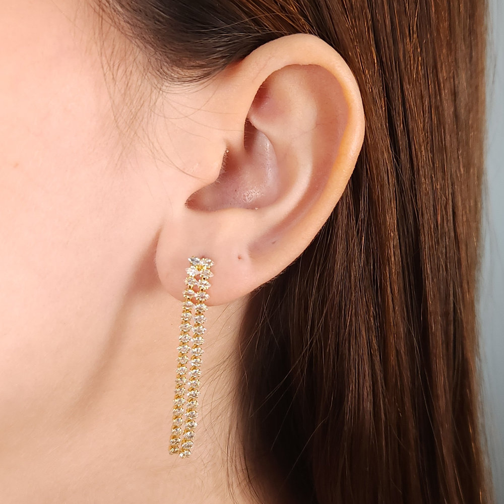 Brinco fio duplo riviera com pedras navete