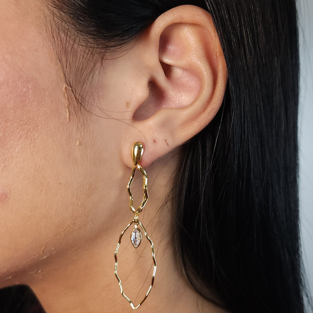 Seja o primeiro a avaliar “Brinco fios ondulados com pedra cristal navete”