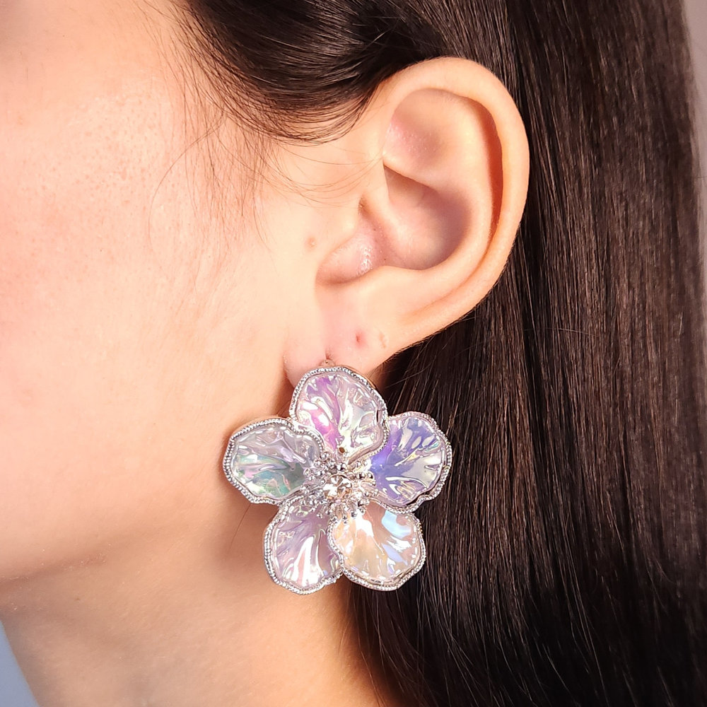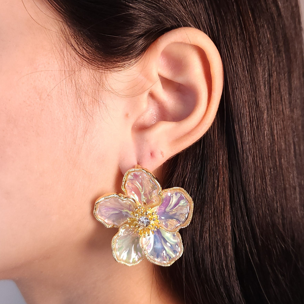 Brinco flor com detalhe ponto de luz central