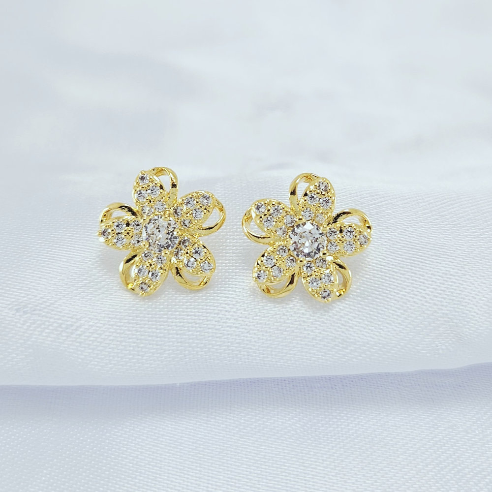 Brinco flor cravejado ponto de luz central