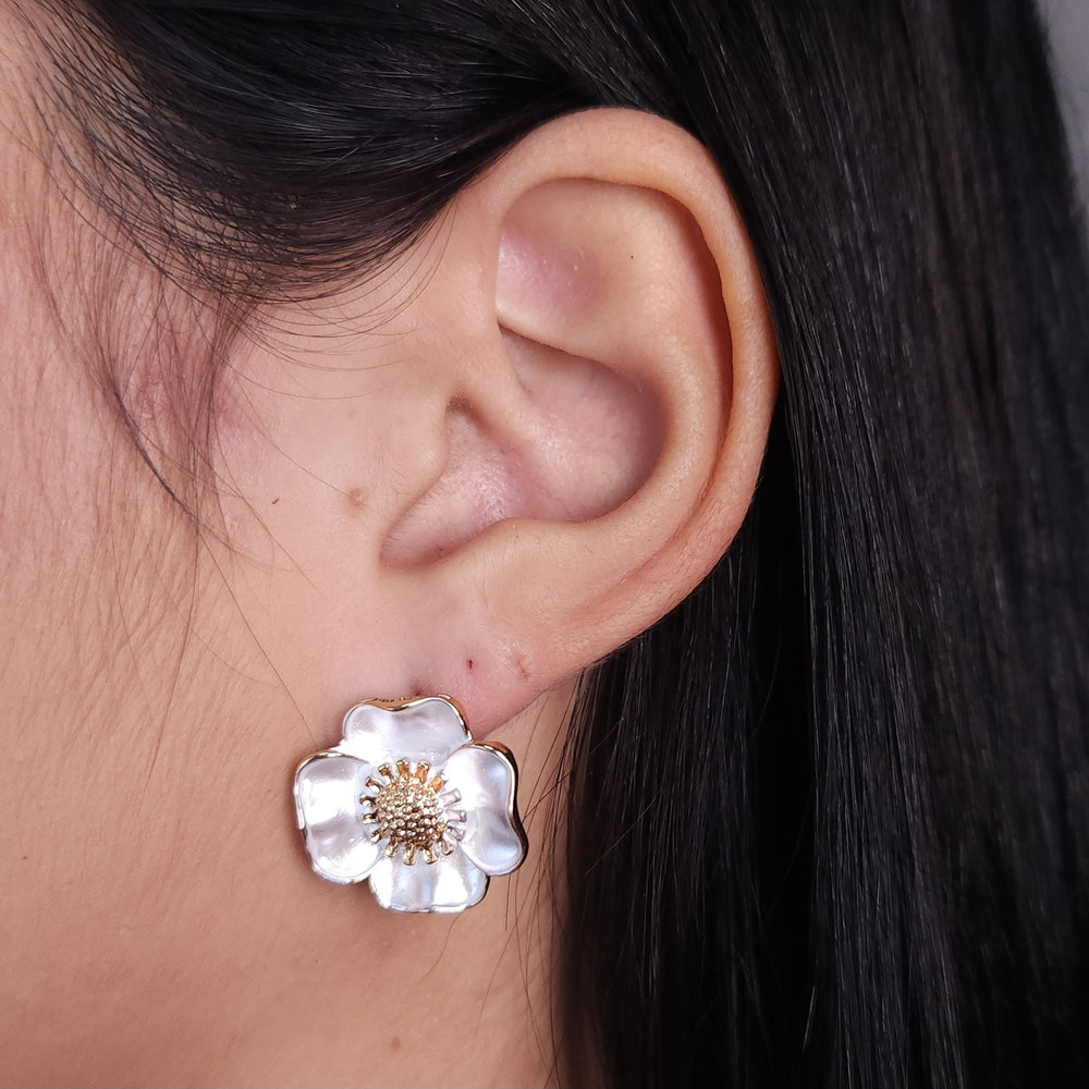 Brinco flor detalhe dourado