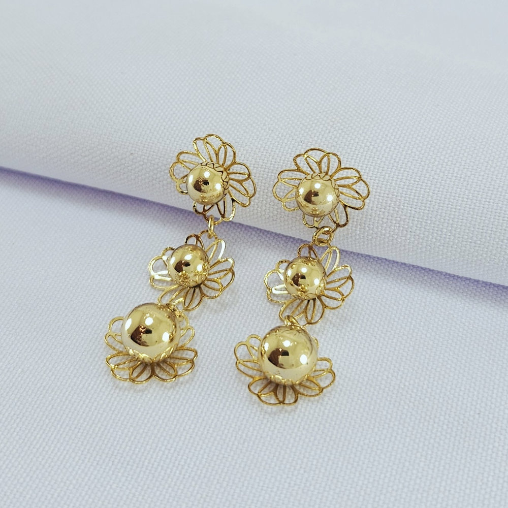 Brinco flor tripla detalhe vazado