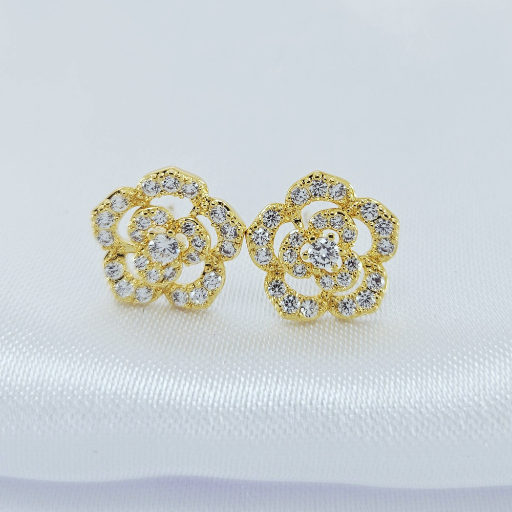 Brinco flor vazada cravejado