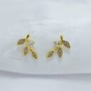 Brinco folhas com pedra cristal