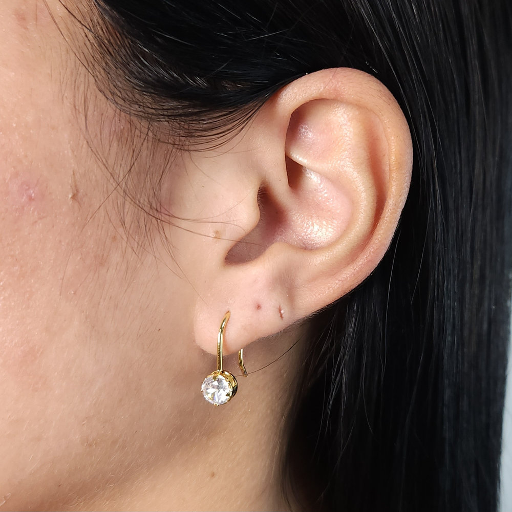 Brinco gancho com pedra cristal