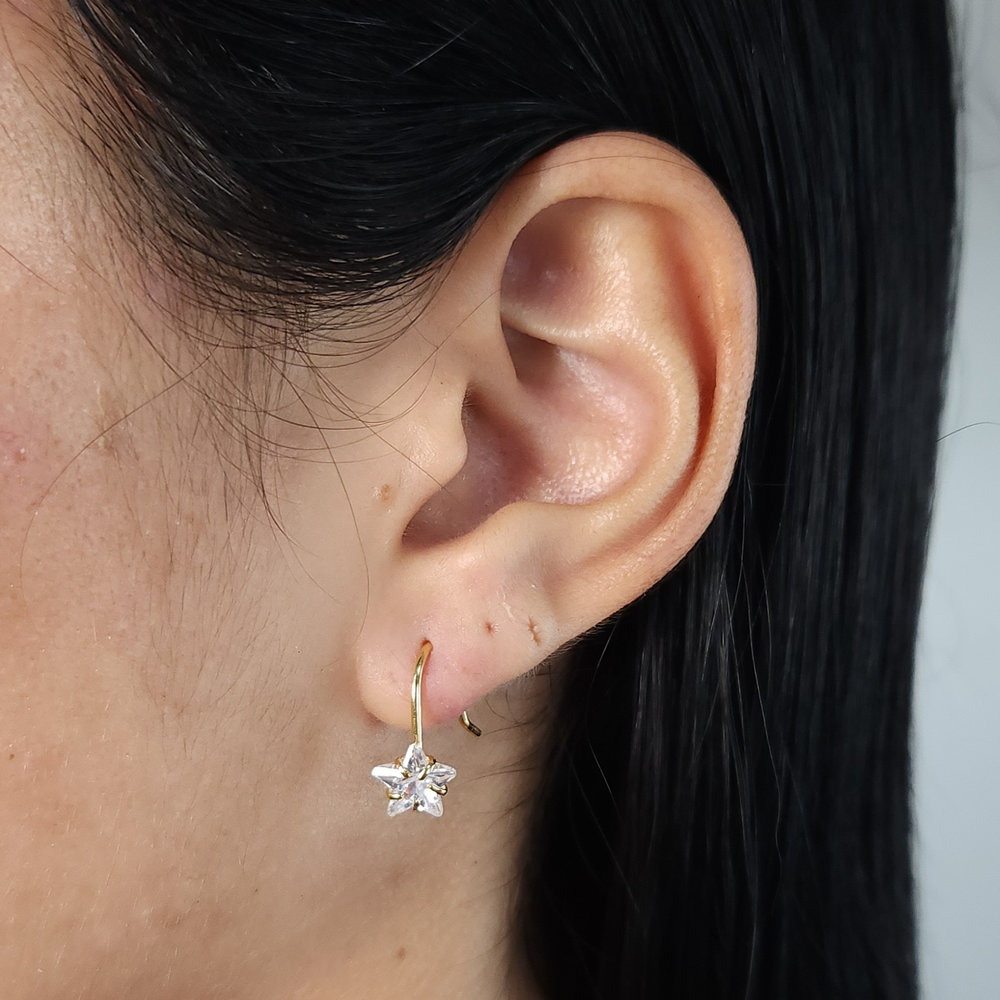 Brinco gancho detalhe estrela cristal