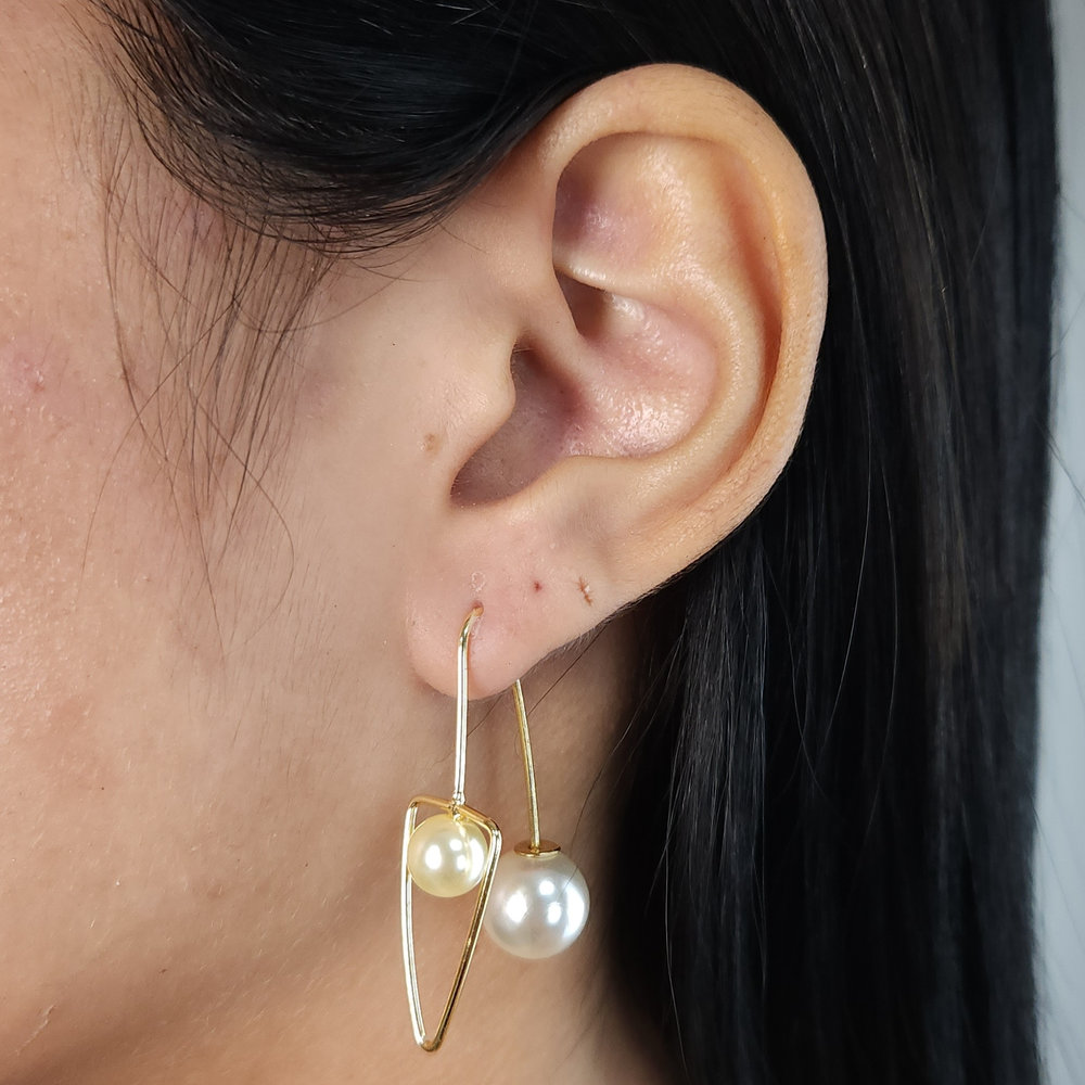 Brinco gancho detalhe triângulo com pérola