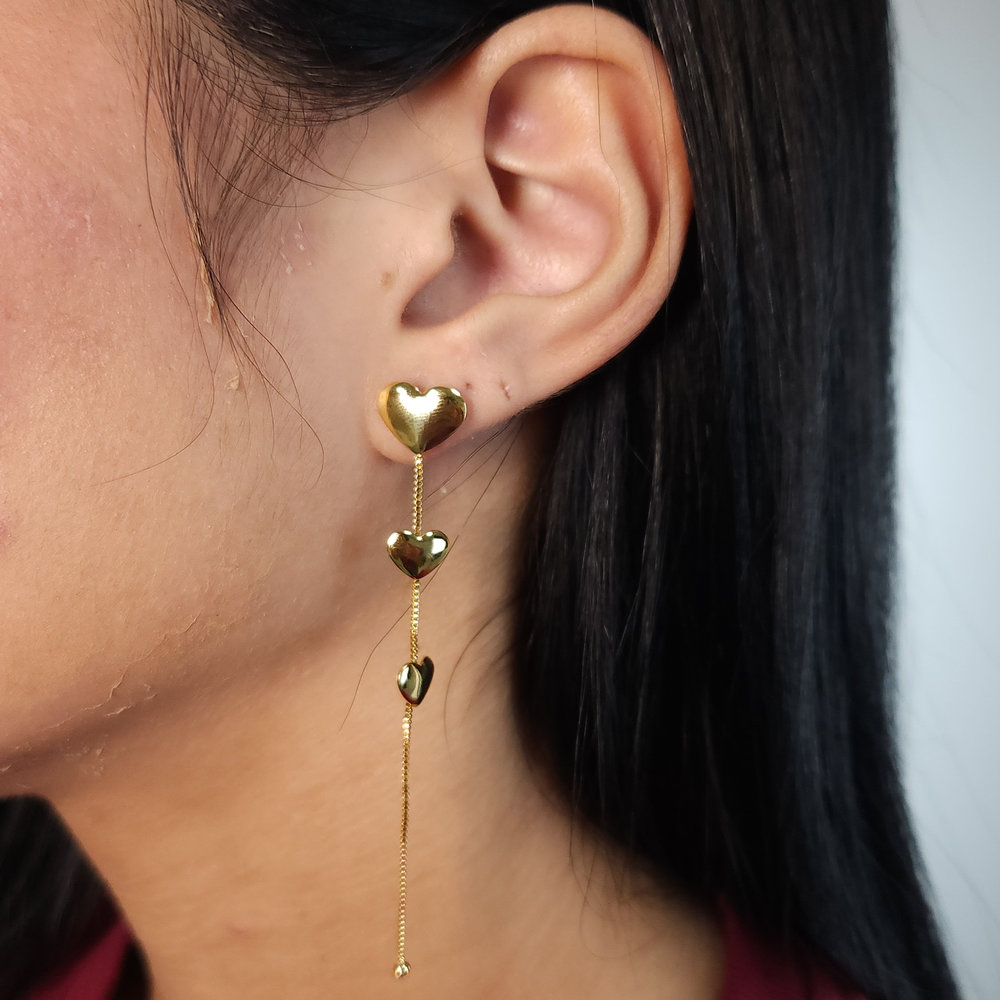 Brinco modelo coração detalhe fio longo