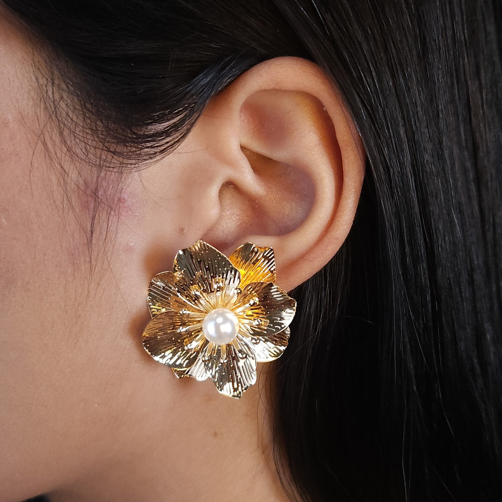 Brinco modelo flor detalhe em pérola